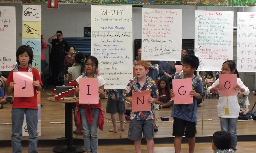 Stduents in Joy Waikoloa’s Music4Kids class learn fundamental music concepts, such as pitch, rhythm, form, and basic notation; all in a fun, collaborative setting. Students sing, play recorder, and learn ukulele. Part of the curriculum includes having them teach others what they’re learning, and in this picture, the students are doing just that!