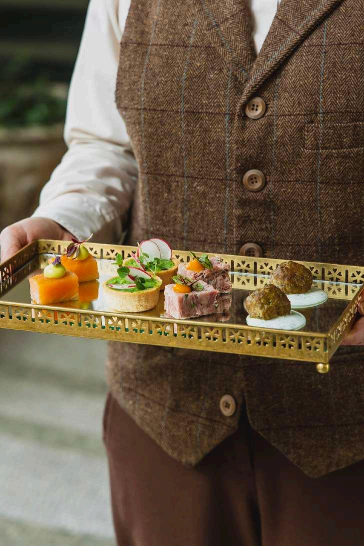 OUR MENUS FEATURE A SELECTION OF SEASONAL, LOCALLY SOURCED DISHES, MANY OF WHICH ARE INSPIRED BY INGREDIENTS FROM OUR VERY OWN KITCHEN GARDEN. WHETHER YOU'RE ENVISIONING A FORMAL THREE-COURSE WEDDING BREAKFAST, ELEGANT CANAPÉS, OR A RELAXED EVENING BUFFET, WE WORK CLOSELY WITH YOU TO DESIGN A DINING EXPERIENCE THAT REFLECTS YOUR PERSONAL TASTE AND STYLE