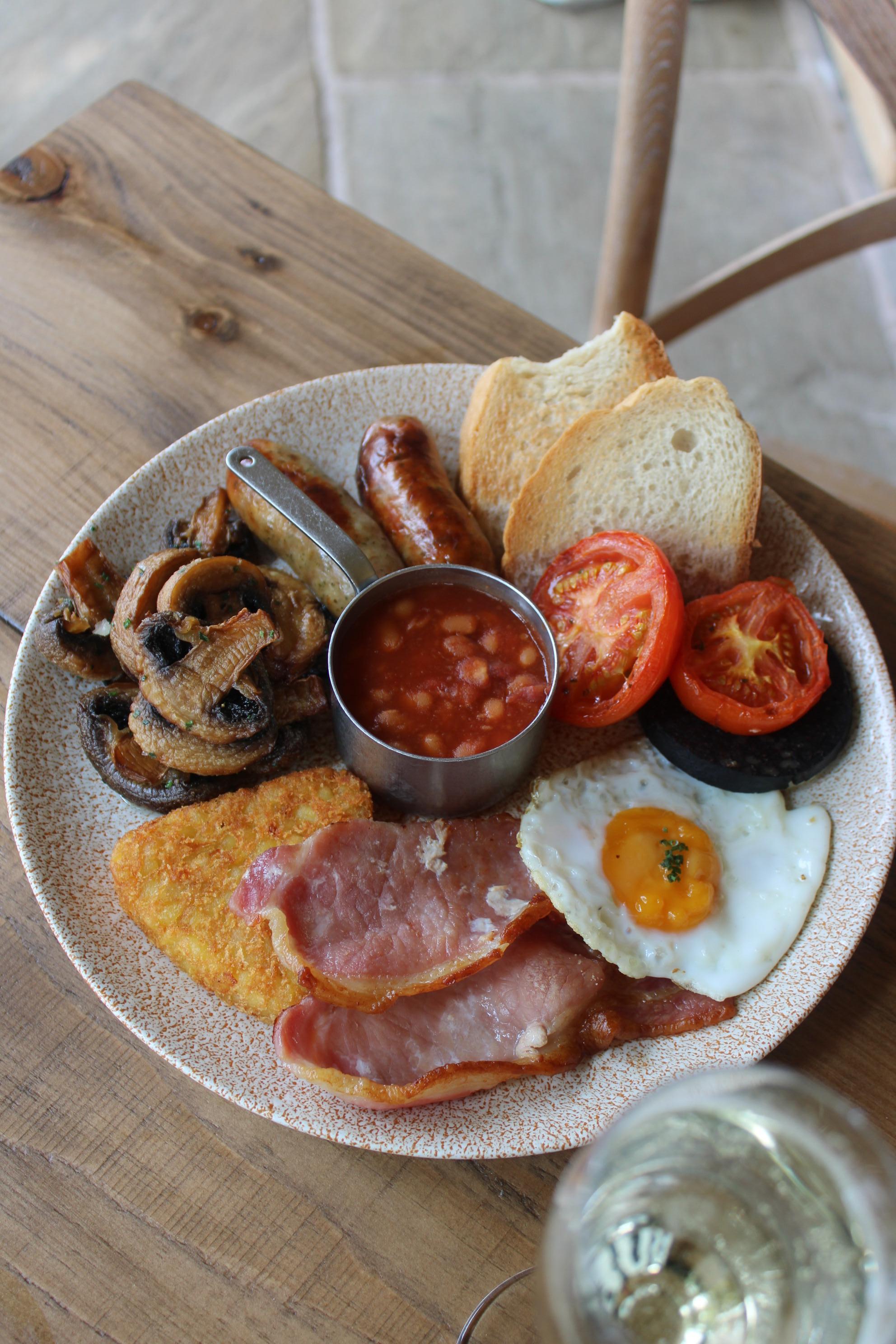 BACK BACON | SAUSAGES | BAKED BEANS GRILLED TOMATOES | BUTTON MUSHROOMS HASH BROWNS | BLACK PUDDING | FRIED EGG SCRA | & BROWN TOAST