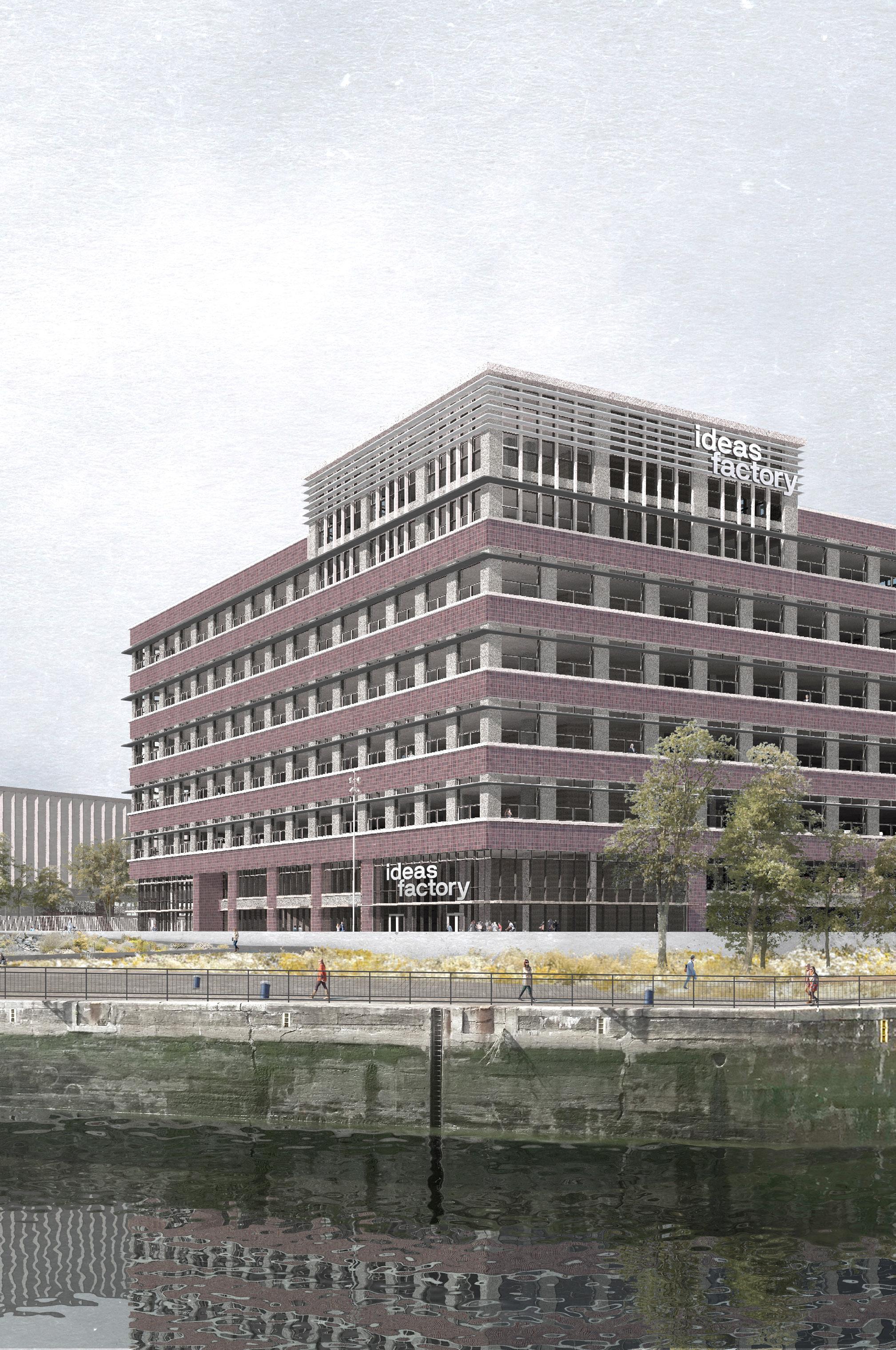 Within our ‘Ideas Factory’ at Albert Island, 25% of the 20,000sqm total GEA is to designed to attract an educational institution. It includes 2000sqm of incubator units within its programme, alongside workshop-like teaching spaces offering industry-specific equipment for transport-related engineering and technical skills, such as CNC and industrial-metrology facilities, rapid-prototyping, collaborative digital design, and artificial intelligence and systems-engineering labs as well as traditional machine-tool workshops.