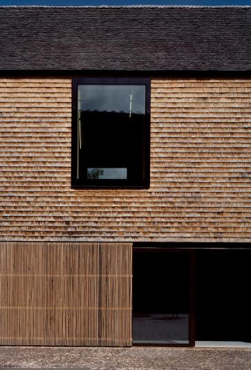 The North Wall arts centre at St Edward’s School, Oxford, includes a flexible, 250-seat ‘courtyard’ theatre, a drama studio, dance studio and art gallery. The design combines the conversion of a listed but disused Victorian swimming pool, the incorporation of an historic stone boundary wall and newly built elements. The swimming pool and outbuildings provided the enclosure for a new timber-framed theatre and support spaces, while the remaining accommodation is housed in a series of contemporary ‘barns’ arranged along the existing wall. A foyer and gallery space in the centre of the linear building allows direct access both from the town and school sides, reflecting the art centres dual role as a school facility and public building. The interior is made of simple, hard-wearing materials: polished concrete, stained plywood panels and natural plywood slats. High levels of insulation, combined with carefully sized windows, help to minimise the energy use in heating and ventilating the spaces. Externally, the walls and roof of the building are clad in unseasoned English oak shakes (hand-split shingles) and slender green oak slats (both carbon neutral materials), designed to bend and twist into organic, patinated surfaces that will vary in colour and texture according to orientation and exposure. The combination of vernacular forms, large frameless windows and a traditional cladding material give the building a rich, abstract quality, appearing both familiar and strange in the sensitive historic setting of the school and its immediate surroundings. The building announces itself quietly as a place for innovation and creativity.