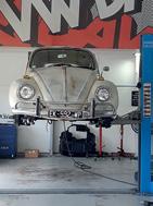 The car arrived at my house and the chap drove the Beetle straight off the trailer and into my garage. I thought to myself, it can’t be all that bad. Soon after, I took it for MOT and then I really found out what was wrong. The lower door hinge was completely detached because it was so rotten. The chassis were solid, but it was the bodywork that was an issue: around the fuel cap, two front quarter panels supporting the bonnet were rotten. Body wise it had lots of dents. It even had wood spacing out the front bumper to put it into the correct position. When I looked the bumper irons they were buckled so