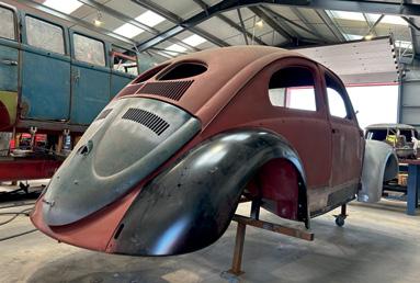 back. Things like the floor pans and heater channels were good. I didn’t have to touch the sills. With the frame head, it’s almost as though the car had been parked nose down in a puddle its entire life.” Max laughs. “It also had the worst right-hand drive steering conversion I’ve ever seen. It looked like it had been done as a school project or something. Luckily, I think all Mexican Beetles should be lefthand drive, so I made the decision to convert it back being a left-hooker when I fixed it. I welded in some metal dash cuts that were given to me, and Volks Magic in Birmingham supplied the dash pad. “There’s actually not much left of this car that