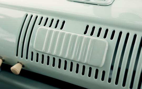 Another key feature, as I think most of you would agree, are the wheels. After running skinny whitewalls for a while, Neil decided on a change to suit the commercial look of the ’66 a bit better. So after little chat with Ned about tyre choice, the decision was made and it was totally the right one – a chrome Sprints and Instaturbo Dakar 195/80/15 combo. With Neil’s VW knowledge and experience, working on the engine himself was no mean feat either. It has a 1500 single port engine and the gearbox is a big nut tranny on standard reduction boxes. Neil worked on the one that was sold with the van, just giving it a quick repaint and fast rebuild. In his eyes