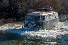 the conditions, it performed really well. The motor had plenty of power and with the combination of brand new steering components, Bilstein shocks and tall radial commercial tyres it has to be the best handling Split bus I’ve driven … and the brakes! Wow, those discs along with a servo really work. It stops like a new car. The electrical system was