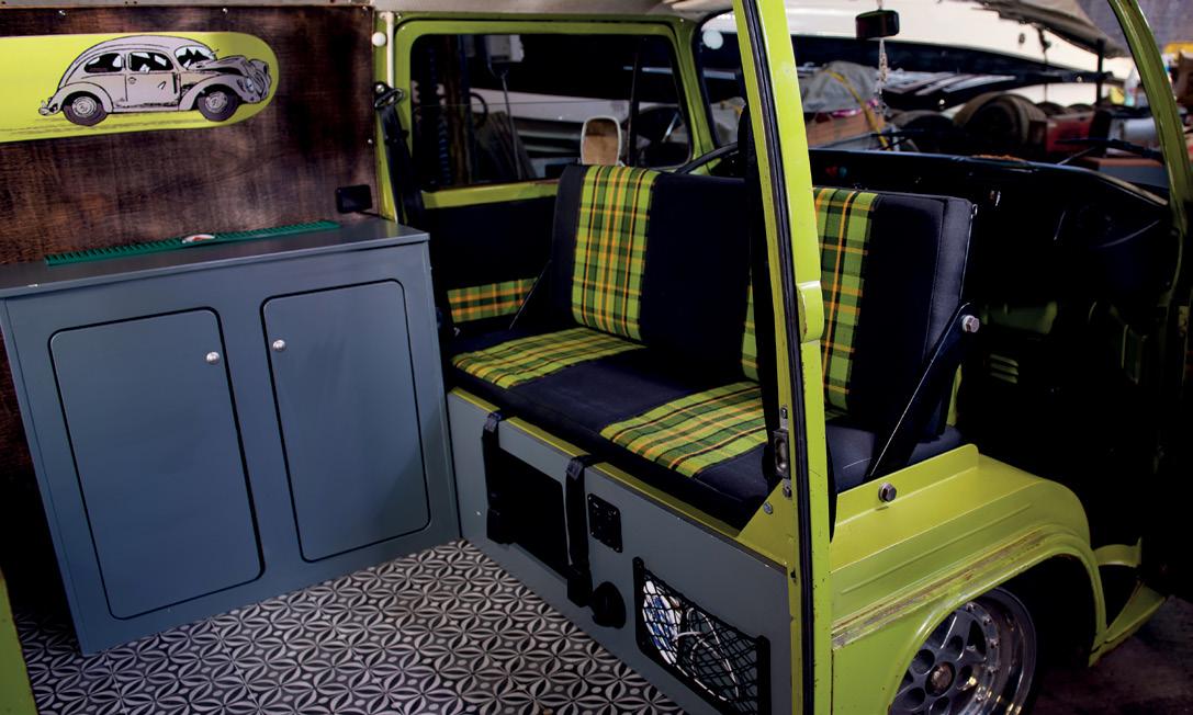 is Mexican. It’s more like a German car now, with a German fuse box and carburettor engine. The suspension is all new and it’s been tubbed and had an engine and gearbox raise to get it to sit really low over the fat BBS wheels. Everything I cut out or removed has been kept to restore other cars further down the line.”