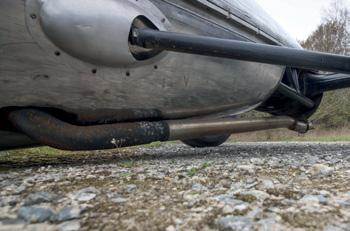 gearbox raise with extra mid mounts on the gearbox for strength. The boot floor has also been raised by two-inches and I fabricated large rear wheel tubs and my own body mounts to allow the bigger and wider wheel/tyre assembly to be fitted.