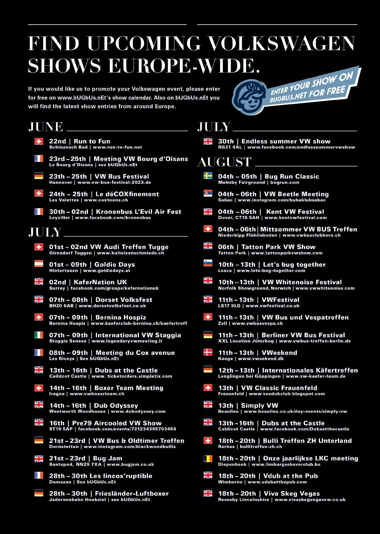 ShaunRees &RichardButolay Butty’s Bits SJ Bowles Coach Trim Sticker Blimp Mad Matz Paruzzi FiftySixDelux Muddy Fields MCJ Es Autos AircooledAuto Elec Oil Can Stickers Deluxe Resto Retro Classic Clothing Wonky Donkey Emporium VW Aircooled Works Concept Poptops Evil Bens German Junkies Aircooled Accessories Outhaus Growl & Grandeur Rarebreed Photography Beetlelink Border Restorations Camper Revamper Geek Shack Peak Van Conversions Rack Shack OB1 Clothing Johnson Autoworks Rusty Lee The VW Engine Company Absolute VW Joe Blow Central England Automotive Autowares Delilah’s Garage 87 SGS Aircooled CohPro Europl8 N2 Engineering Kinky Mick BusOK 94 Bruce Rusty’s Garage Empi US Adrian Flux Dub Fab VW Trends JP Group JF Bodyworks VDub Radio Winner Winner Comps Rooftent Utopia ReCoventry Ltd. Funky VW NL Kompressorhaus R3 Garage Robertson Restos Autocraft Doncaster VW Show Dubs at the Castle RetroDub Suffolk Wilton Bradley VW Whitenoise VDub at the Pub Renegade Brewery Kent VW Festival Beaulieu - Simply VW BRITISH BUILT ELECTRIC B KE E-CHAMP TECH II