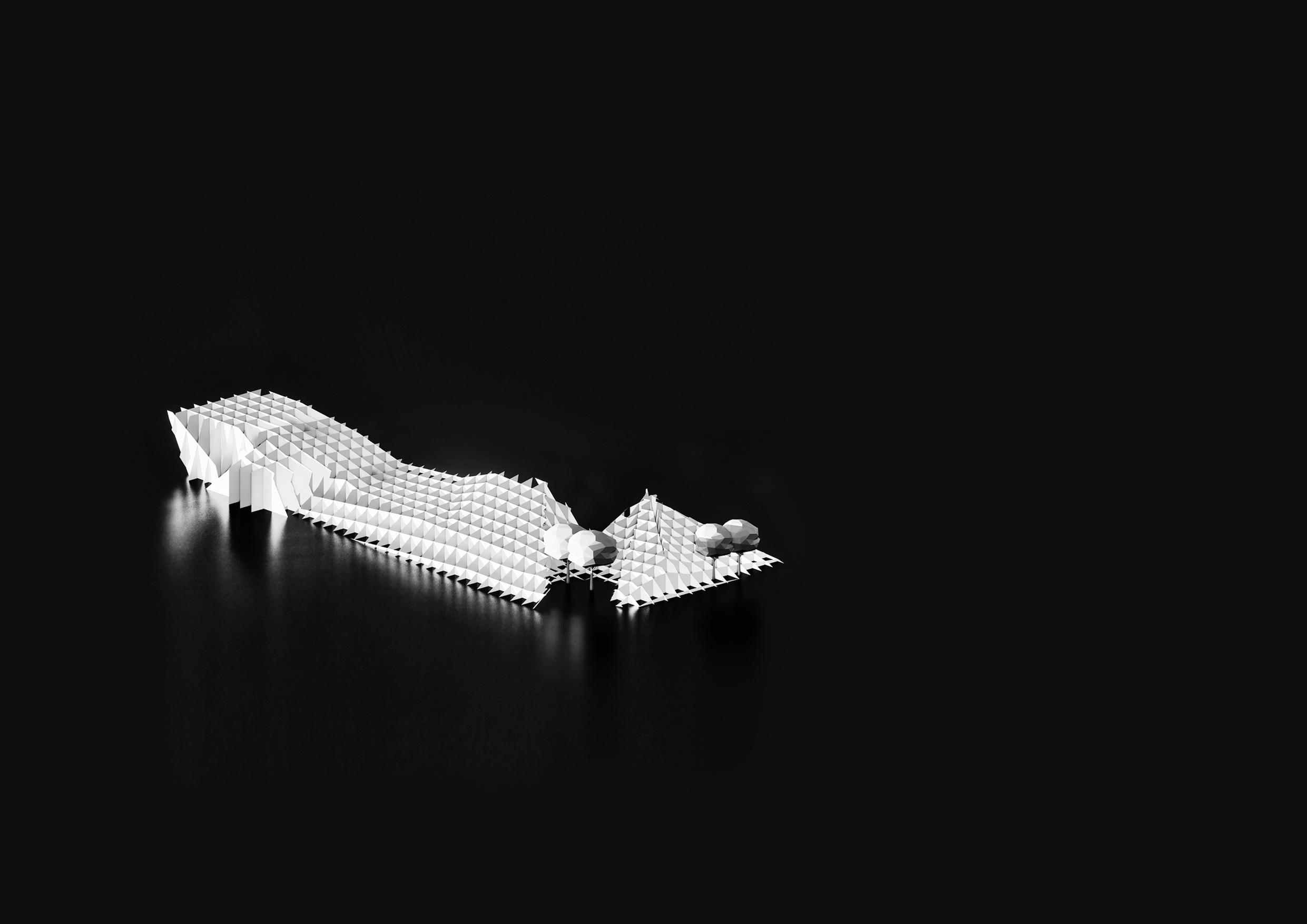 ‘For the Fallen’ referencing from the poem of Laurence Binyon; the proposal seeks to imbue the shrine with the symbolism of light. For the soldiers’ freedom, the plan envisions opening the central well to be illuminated with moonlight, enlightening the shrine and its surroundings.