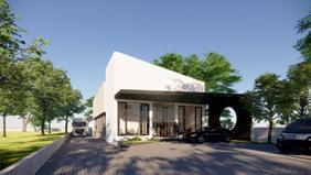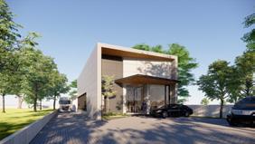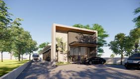 Natural stones and timber cladding plays a role to elevate the front elevation, some vegetation are provided as design accent, and usage of ACP (aluminium composite panel) are mostly used on the long-side to ensure modularity and construction convenient.