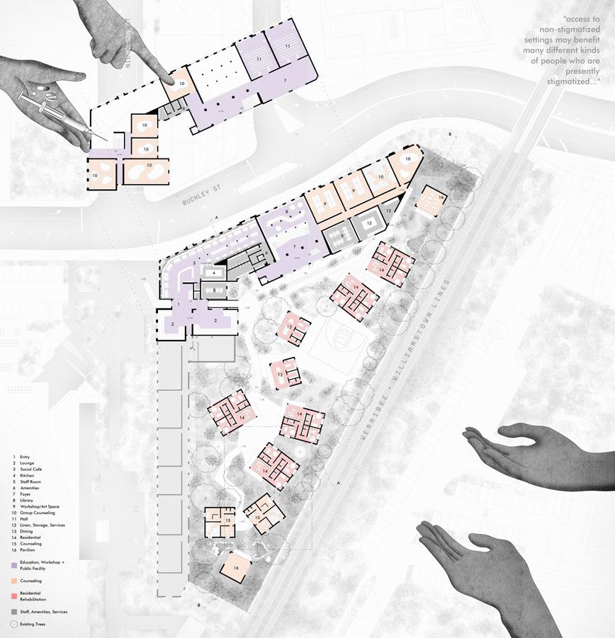 keywords: AOD addiction, rehabilitation, adaptive-reuse, social buffer, destigmatization, community