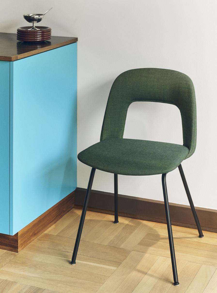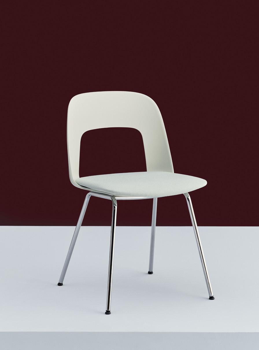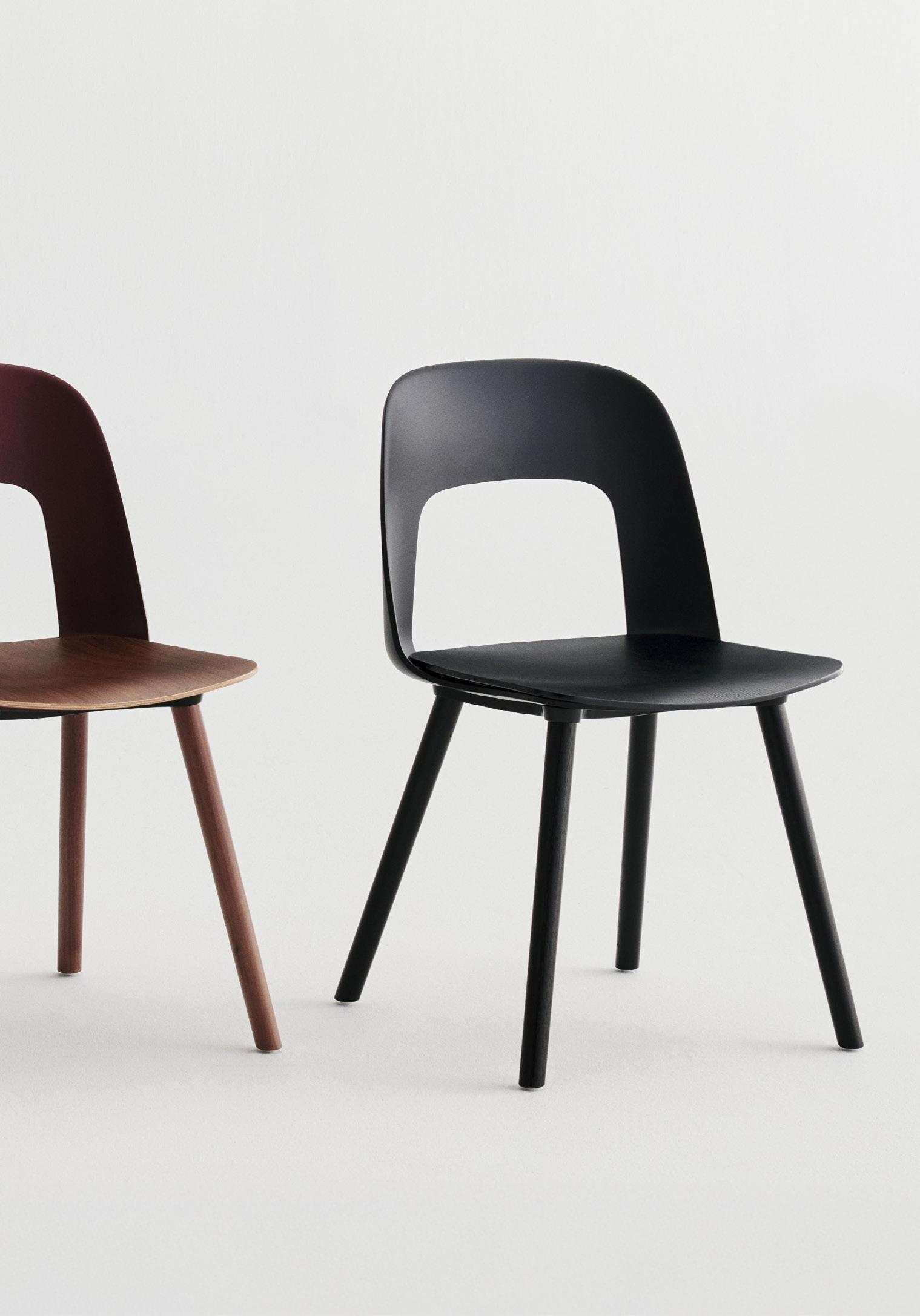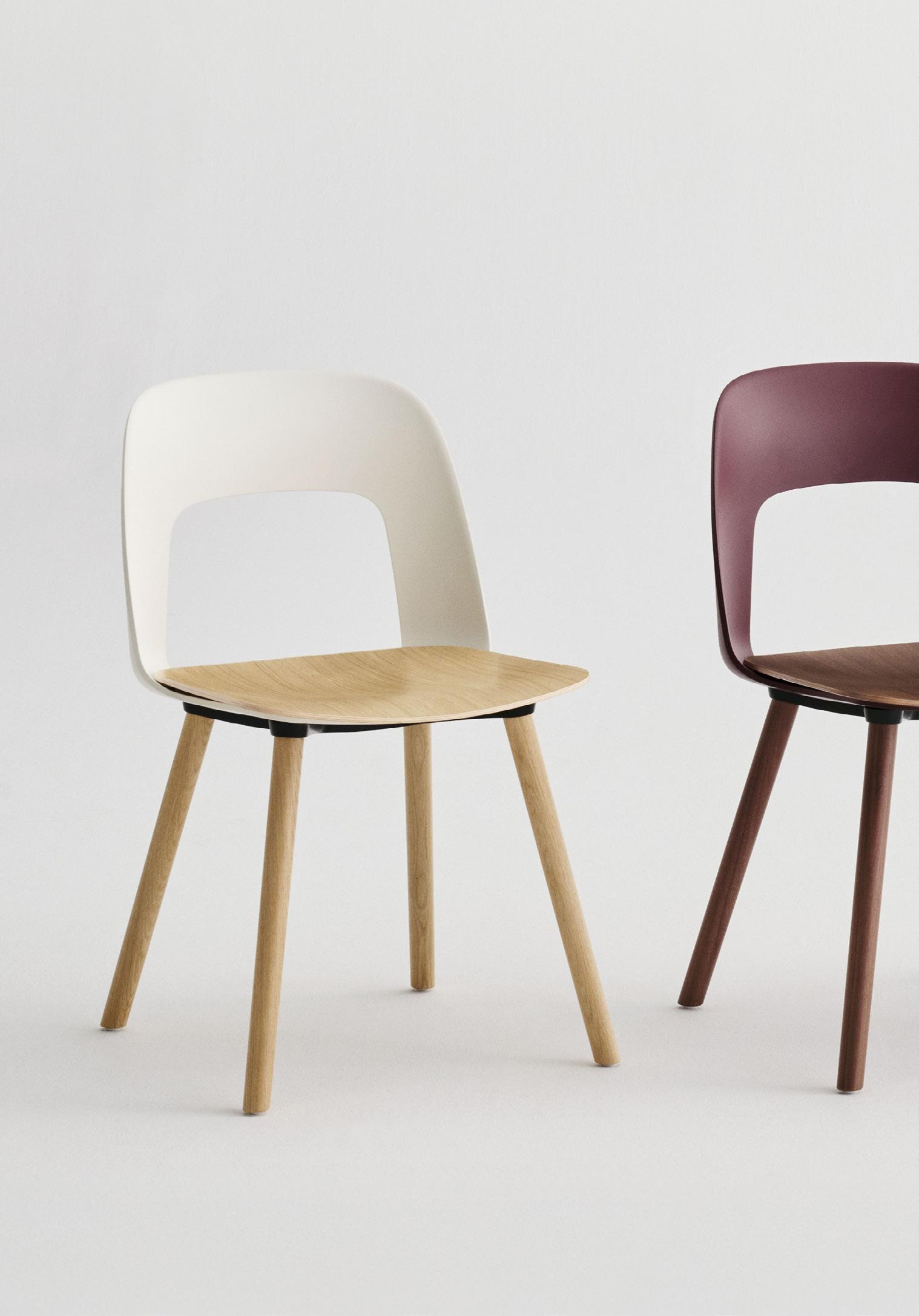 Characterised by the opening in the backrest, the chair combines visual lightness with a compact, space-efficient form. Offering natural support and flexibility, it is well suited to cafés, canteens, conference halls, and a variety of domestic settings.