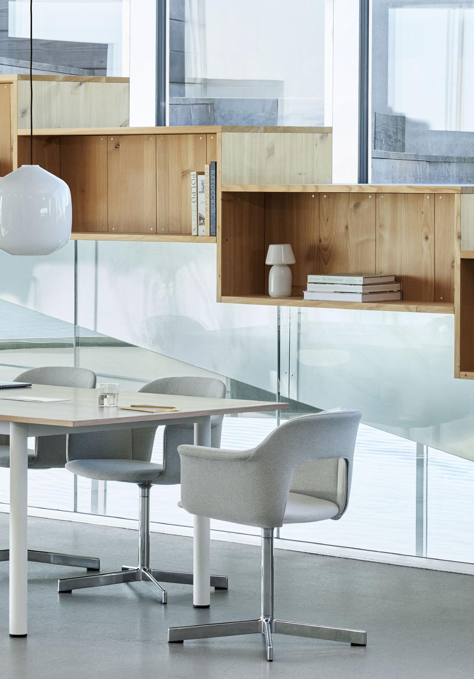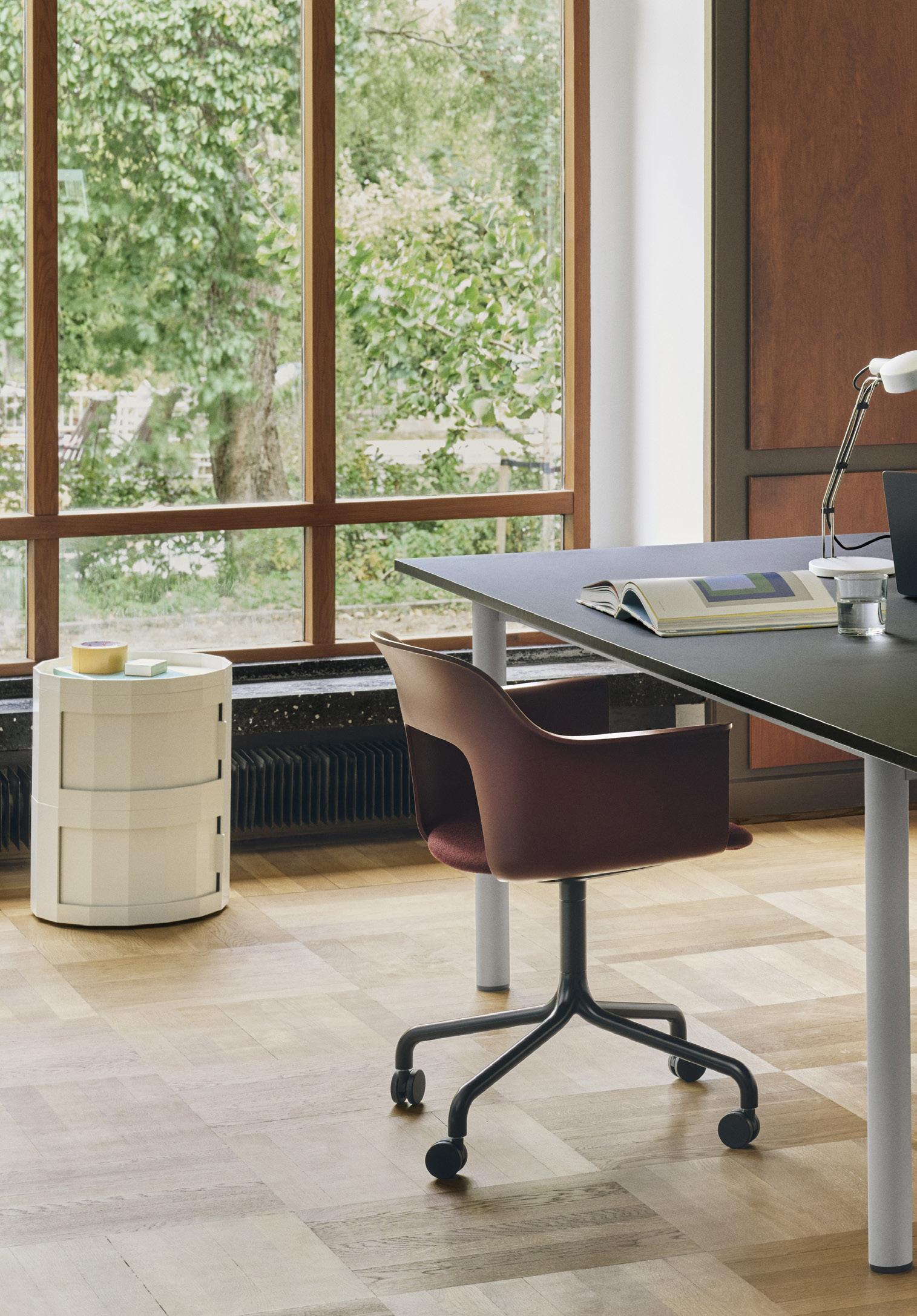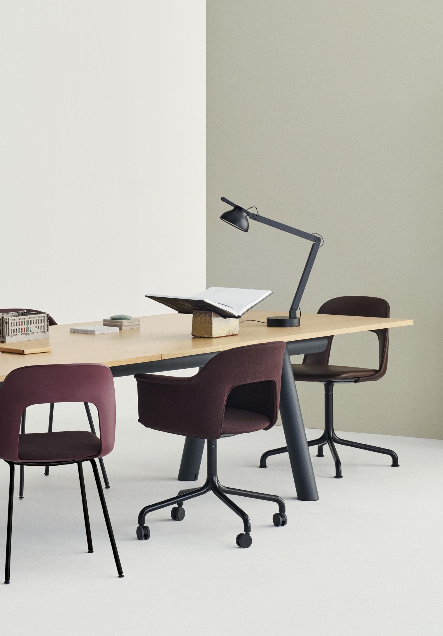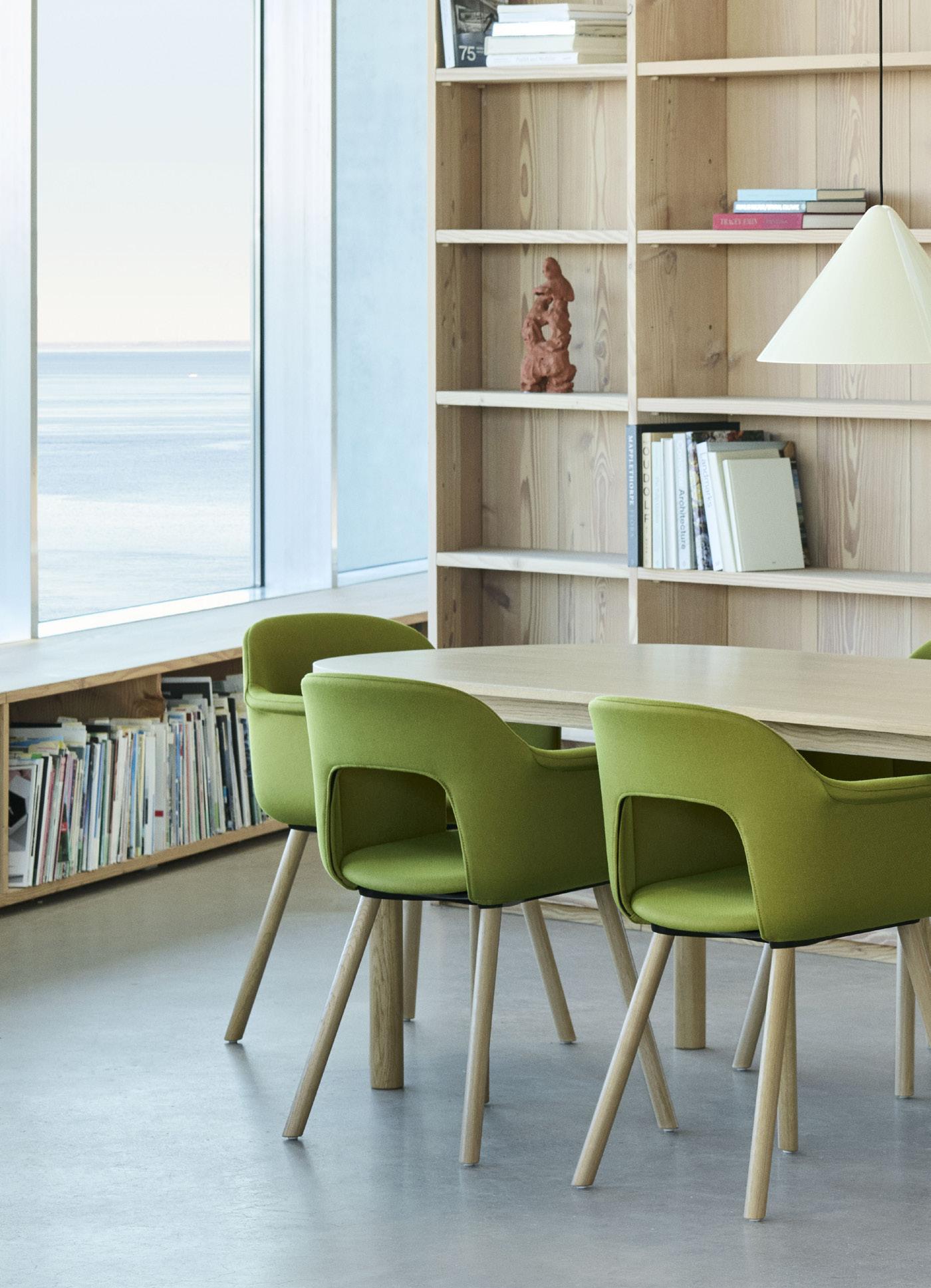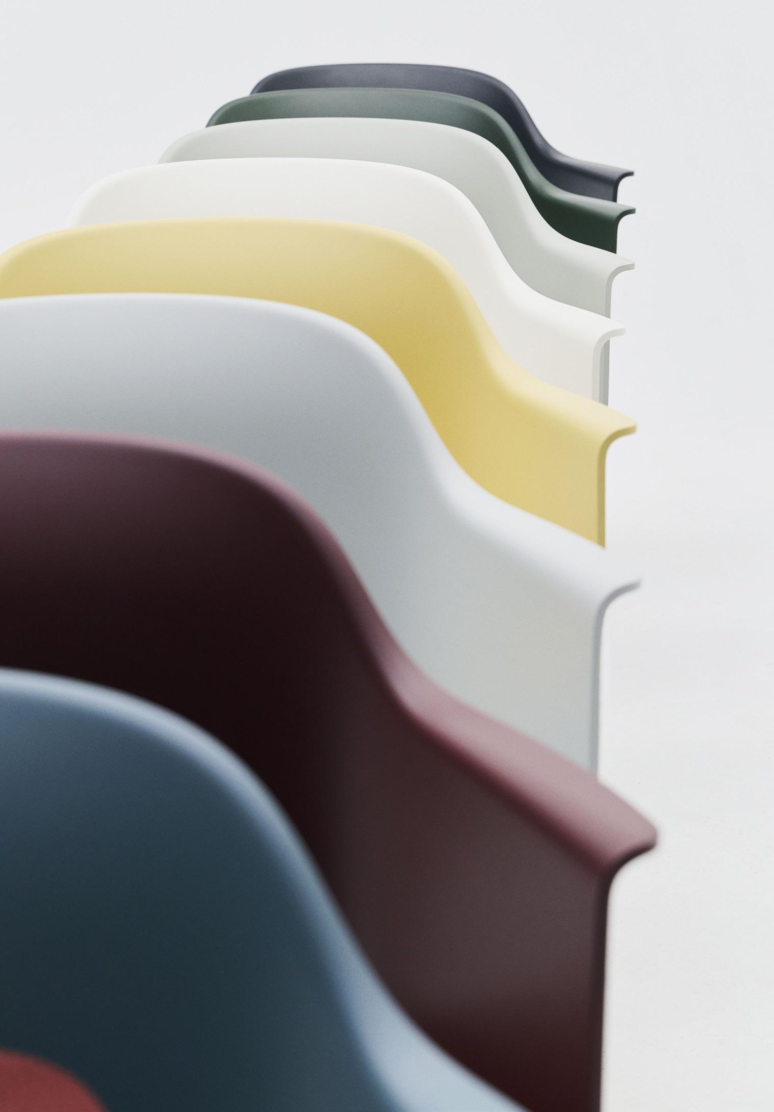 Defined by the opening in the backrest, the armchair has a light, transparent expression, while the integrated armrests provide added comfort and support. Generous yet versatile, it is well suited to meeting rooms, workspaces, and hospitality environments.