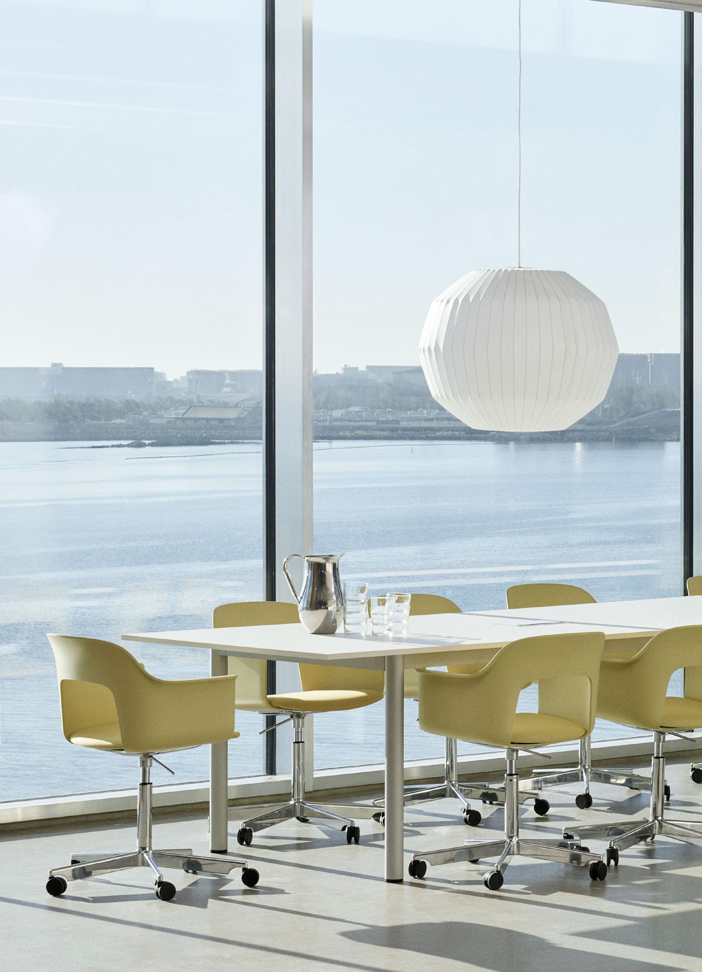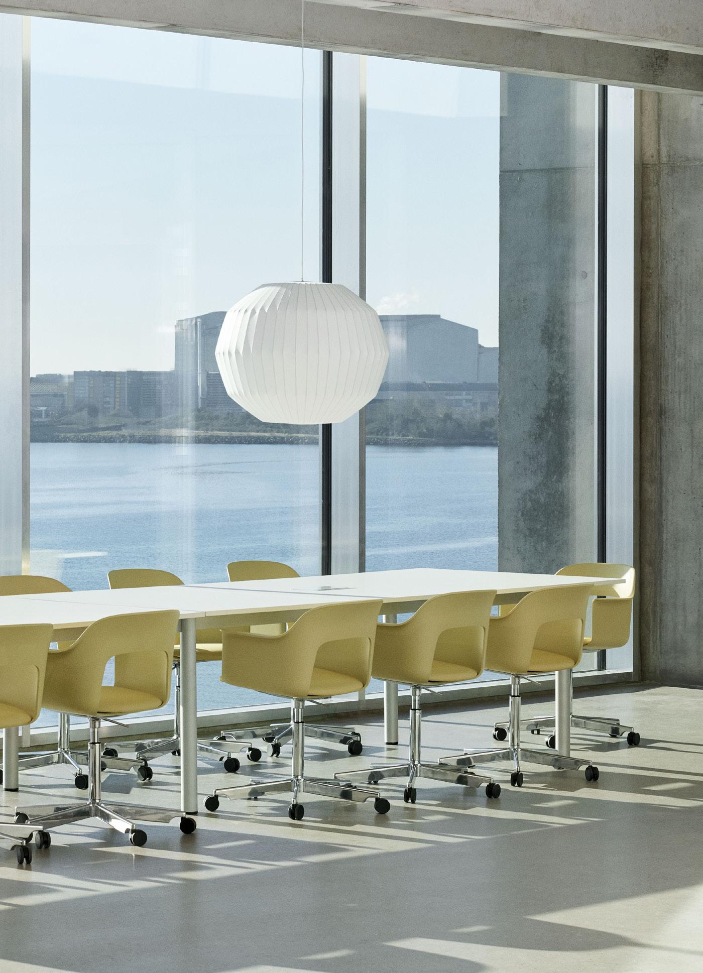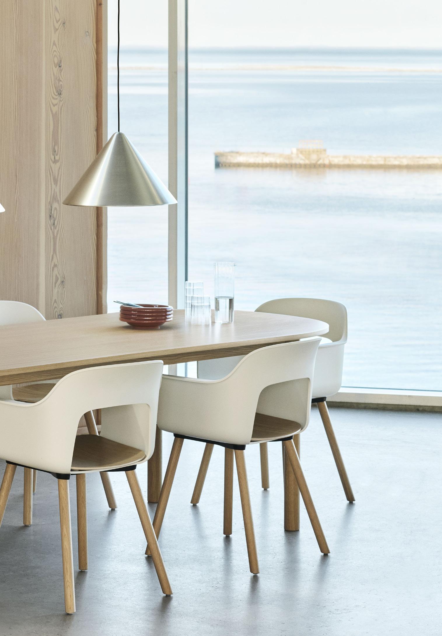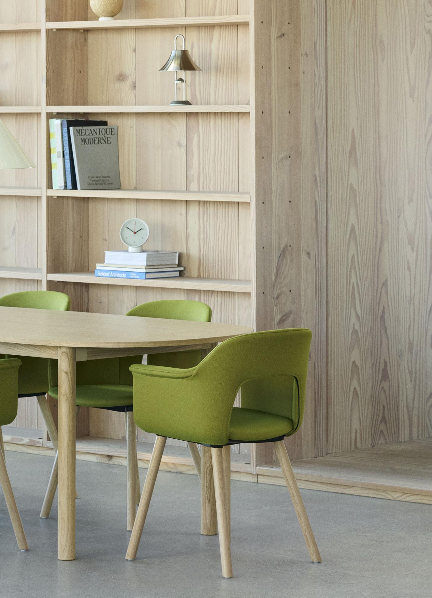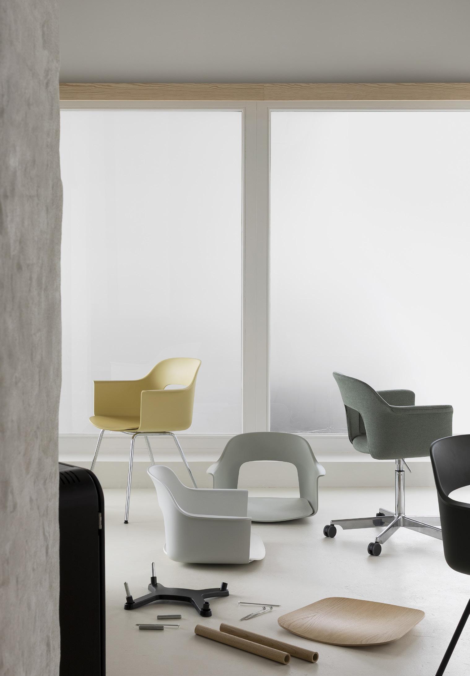 Defined by the opening in the backrest, the armchair has a light, transparent expression, while the integrated armrests provide added comfort and support. Generous yet versatile, it is well suited to meeting rooms, workspaces, and hospitality environments.