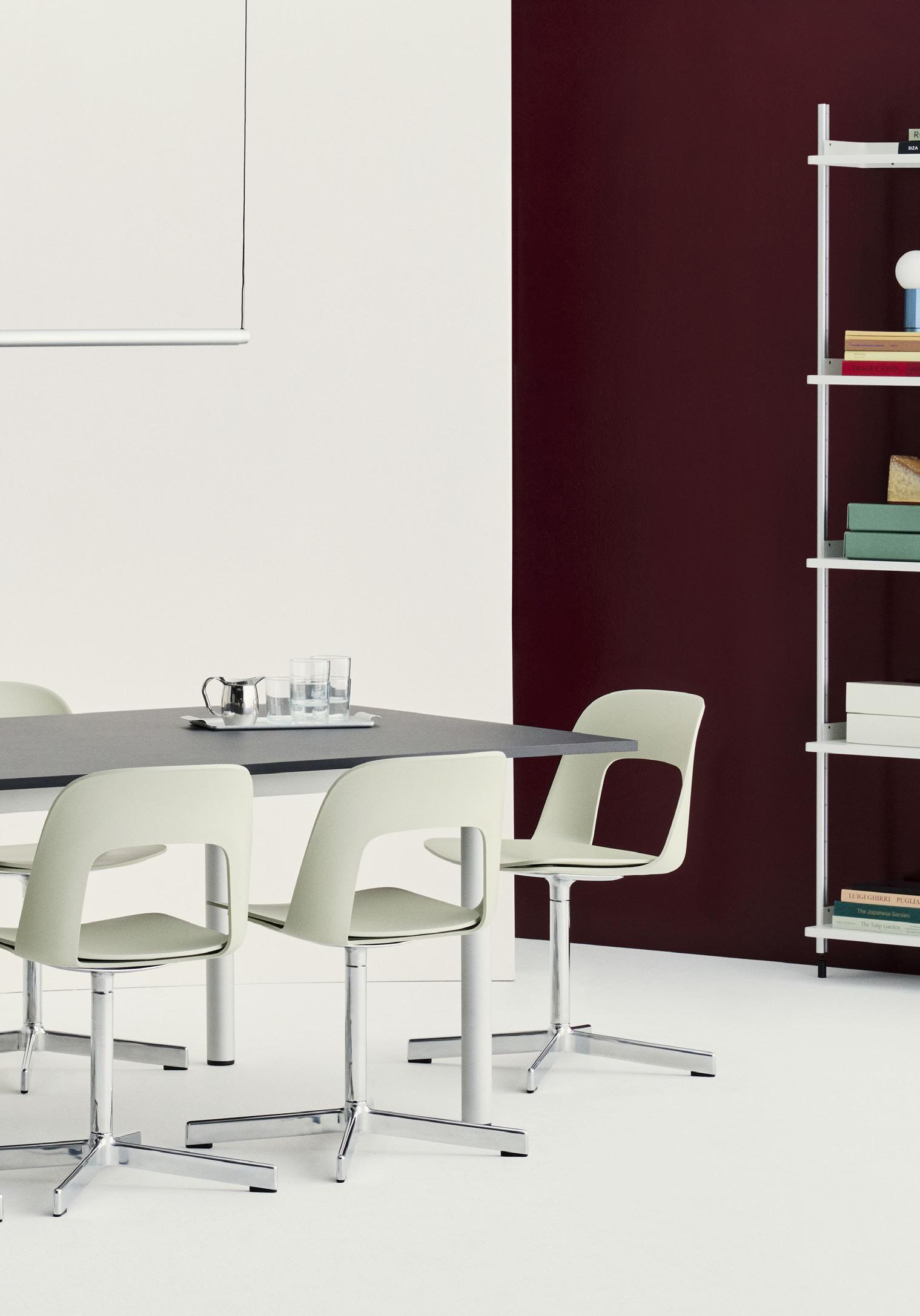 Layout Chair demonstrates a flexible and innovative design, offering a fully customisable range shaped by a commitment to comfort and functionality. Characterised by the opening in the backrest, the design provides greater comfort while giving its appearance a sense of lightness and transparency. Defined by its open-back shell, Layout offers a sense of lightness – both visually and physically –while offering natural, responsive support. With countless combinations of shells, bases, and legs, it transitions effortlessly between offices, public spaces, and domestic settings – delivering comfort, flexibility, and a refined expression wherever it is placed.