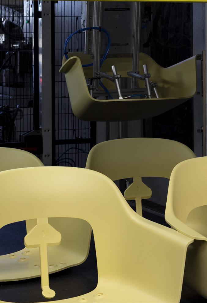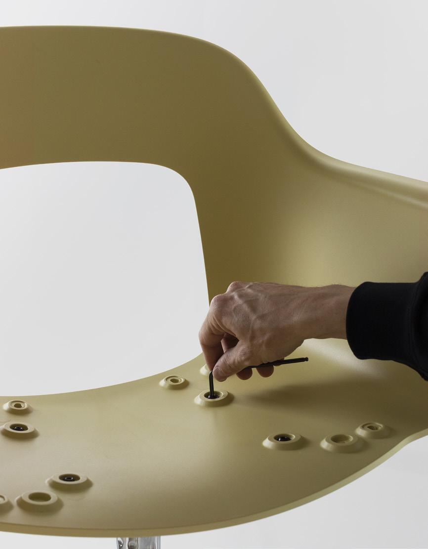 Made from at least 96% post-consumer recycled plastic sourced from European household waste. The plastic is processed into recycled pellets and reused in the production of the chair’s shell.