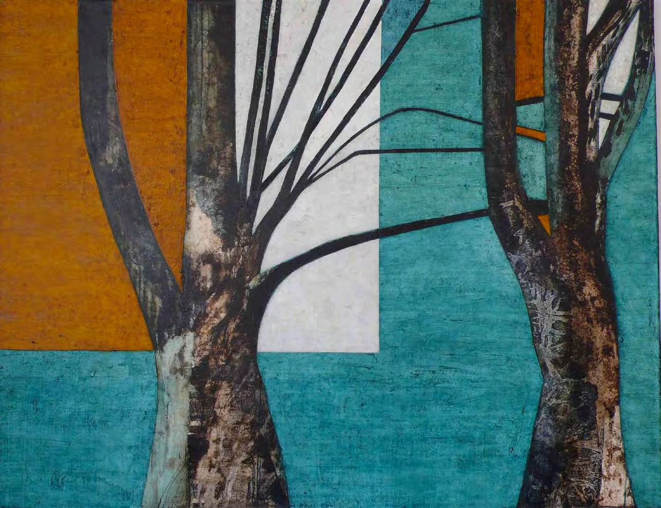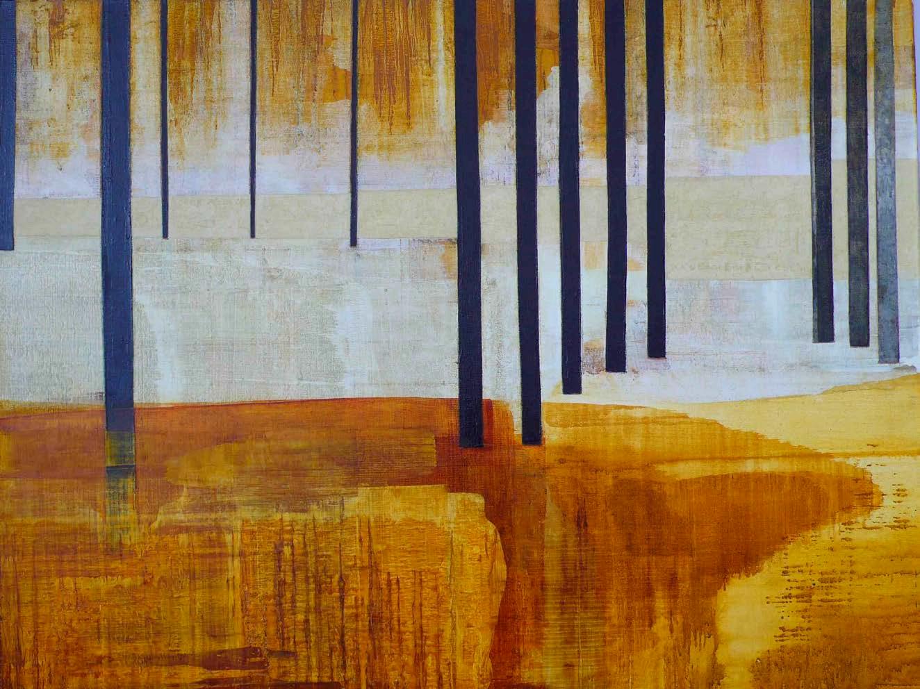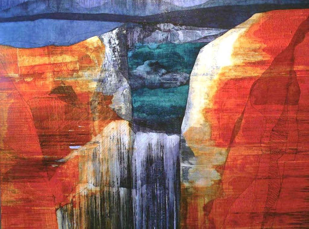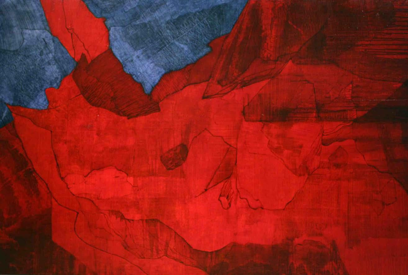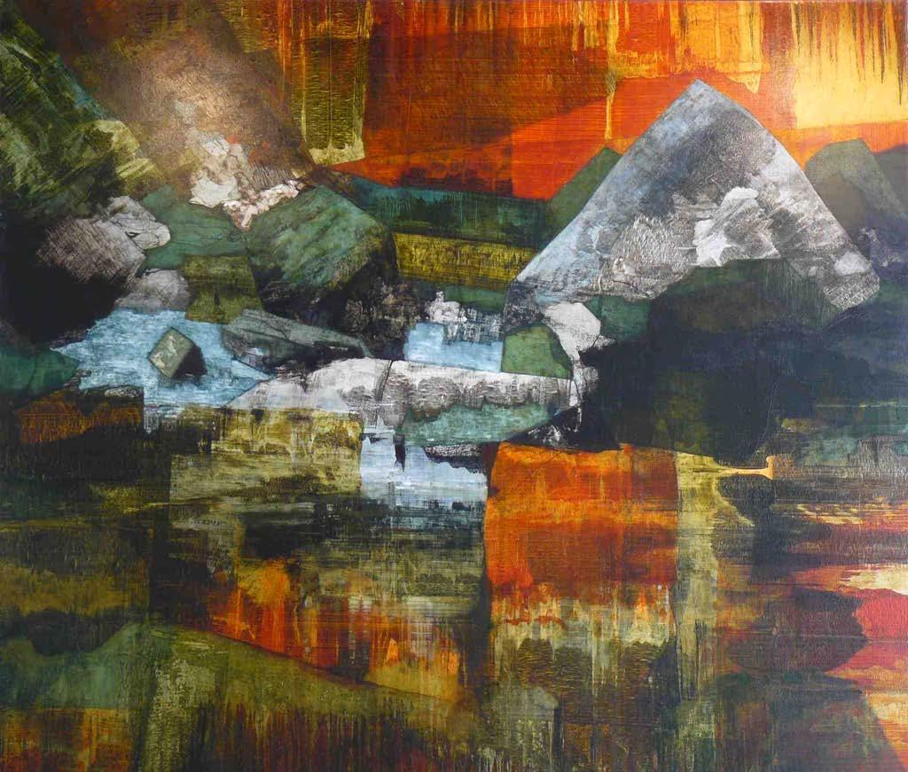 “My paintings aim to communicate a sense of awe and enjoyment in landscape. They reference the European genre as a means of questioning our cultural construct of wilderness and our relationship to the natural world . The images are developed from drawings made ‘in the field’ yet by an intense engagement with the processes of painting and studio practice, the resulting canvases become as much a meditation on a geology of association and memory as of actual place.”