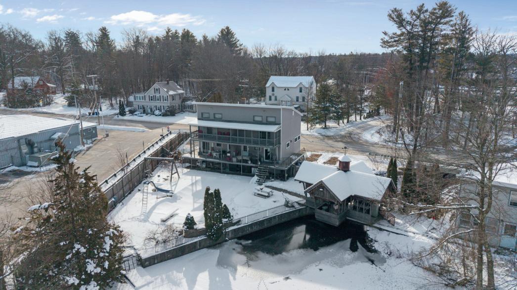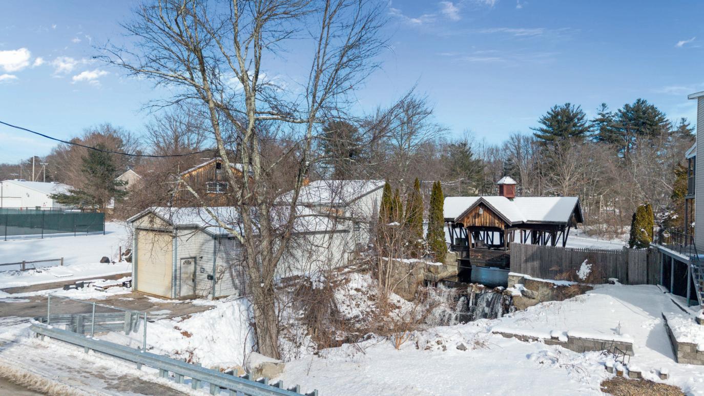 Units A+B Duplex: 2 Beds, 3 baths each Unit C off garage (w/lift): 1 Bed, 1 bath apt. 2.27 acres including direct access to Melendy’s Pond, covered bridge to oversized barn, and even a mini waterfall
