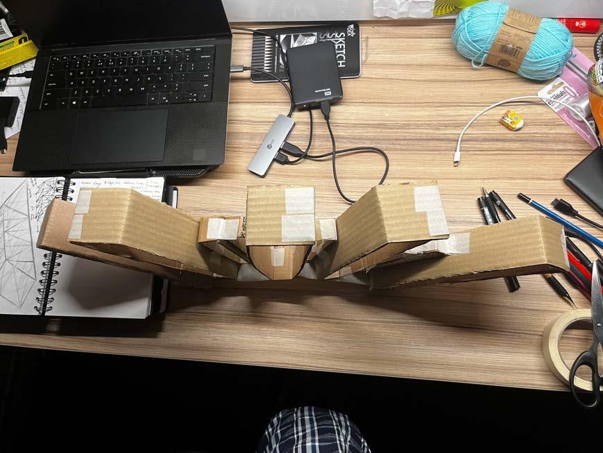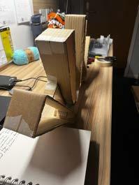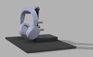 The card model here presentsasenseofscale. Thedesignrequiredlevels or set support edges for balance. It was justified that clients’ mobile earphones or lightweight headphones could be supported, but not the heavyloadtype. Front view