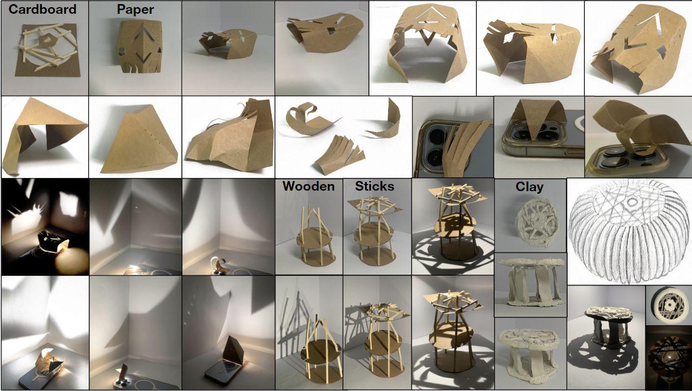 I created various type of lamp shades using cardboard, hardened clay and balsa sticks to test lighting effects. The purpose of this project was for me to understand and see how light sources deflected and bounced of different types of designs.