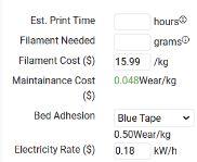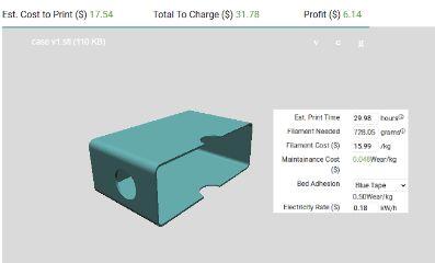The tool is designed to help calculate “actual” costs + profits generated from a 3D printed part. The calculator slices the STLfile and estimates values needed to calculate cost of print.