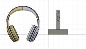 These are the front, side and back views of my product. These cad models helped me to achieve an ideal aesthetically pleasing product. A problem I solved during this process was finding the perfect headphone sit located here. I was finding simple shapes like squares, rectangles or triangles for the support but they were lacking style; balance.
