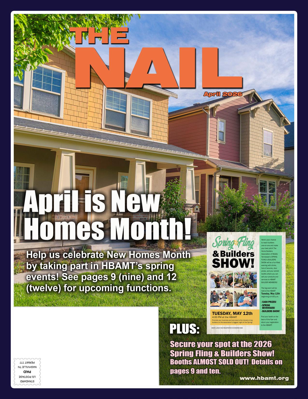 THE NAIL is published monthly by the Home Builders Association of Middle Tennessee, a non-profit trade association dedicated to promoting the American dream of homeownership to all residents of Middle Tennessee.
