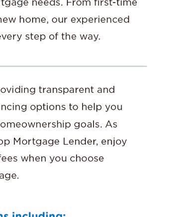 Get a $2,000 credit at closing As a new construction home buyer, you may be eligible for a $2,000 credit YOU CAN COUNT ON US At BOK Financial, we’re here to help make your dream home a reality. Our mortgage bankers will work with you and your builder to provide a smooth, streamlined experience from application through closing. We offer: • Competitive Rates • BOK Financial Mortgage® is a trademark of BOKF, NA. Member FDIC. Equal Housing Lender ©2024 BOKF, NA. approval. This is not a commitment to lend. May not be combined with any other offer. $2,000 credit only available for properties located in Arkansas, Kansas, Missouri, and Oklahoma. Contact a Mortgage Banker for additional details; some restrictions apply. NMLS # 403501 WE’VE GOT YOU COVERED. CONTACT US AT 833.946.0876 TO DISCUSS FURTHER. • Personal and attentive service • Servicing 99% of our mortgage loans 17