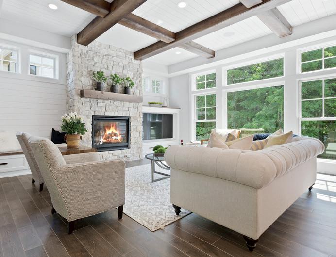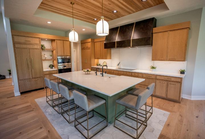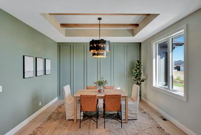 Featuring 2,540 square feet, three bedrooms, three bathrooms and a twostall garage, this open concept living room, dining room, kitchen and outdoor patio design creates a casual indoor/ outdoor living opportunity. A gourmet kitchen features quartz countertops, tile backsplashes, stainless steel appliances and a walk-in pantry. The spacious primary bedroom features a spa-like bathroom with a spacious shower, double sinks, private water closet and a large walk-in closet. A guest bedroom, bathroom and a spacious laundry area complete the main floor. The finished basement with nine-foot ceilings includes a large family room, another bedroom and bath plus lots of storage.
