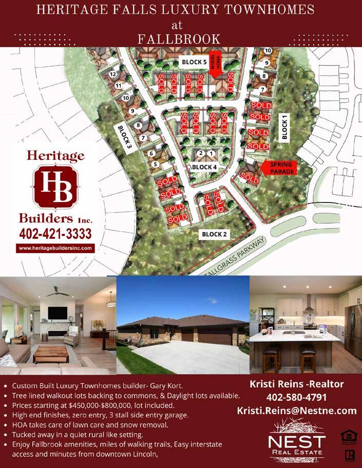 Heritage Builders has been building custom homes and luxury townhomes in Lincoln for over 40 years. Their reputation for craftmanship and attention to detail is second to none. The Margot is just one of many options in Heritage Falls. Additional walkout and daylight lots are available and waiting for you to design and build your dream home.
