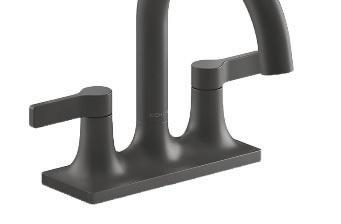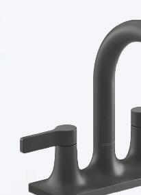 Very similar to the selections seen in the kitchen, the soft gray shower wall tile adds a subtle touch of color without competing against the striking contrast between these dark and light tones.