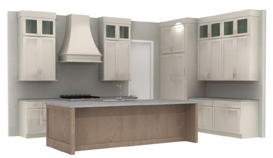 Tops: Calacatta Laza Quartz Island Cabinet Doors: Prairie in Oatmeal