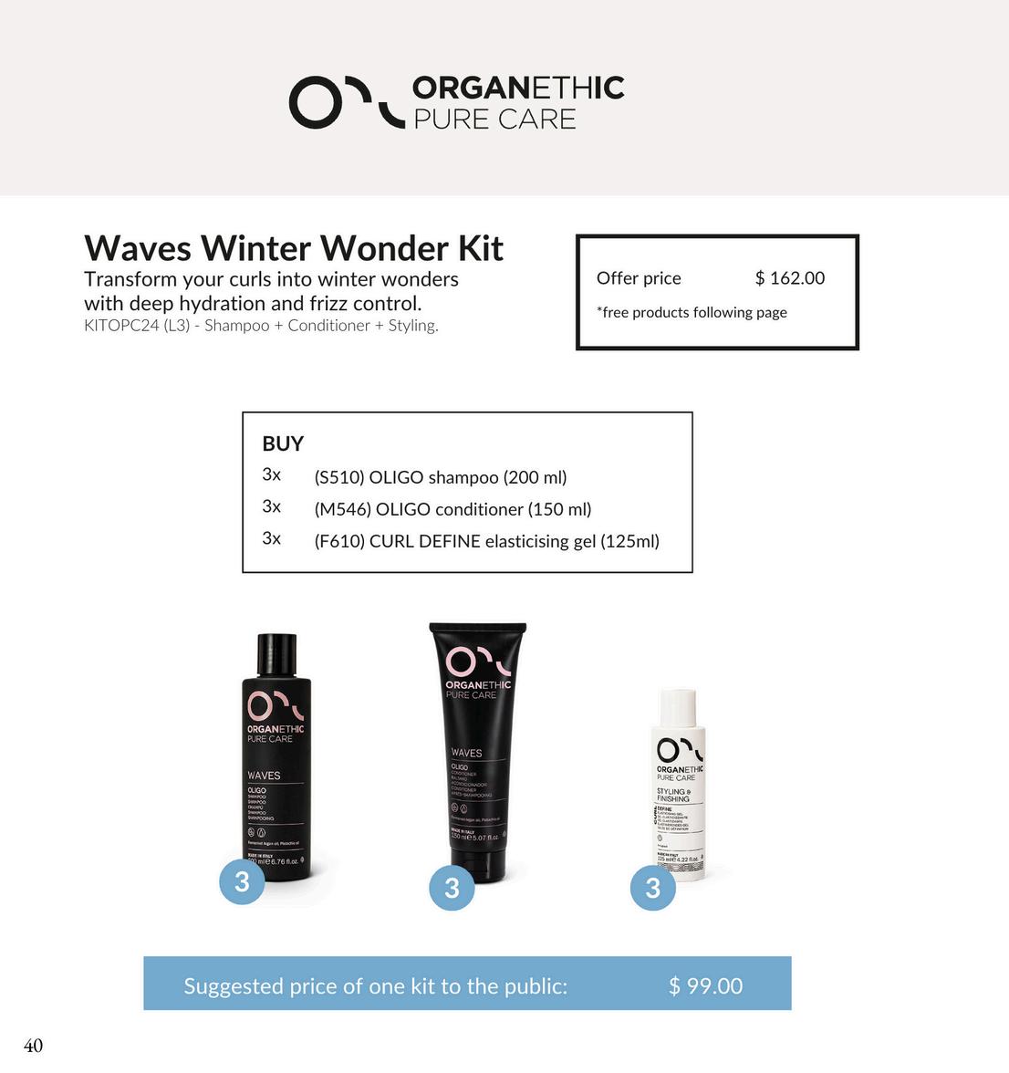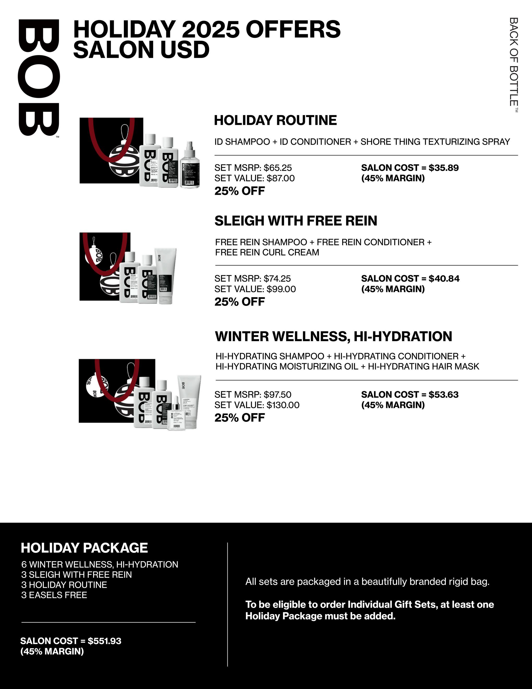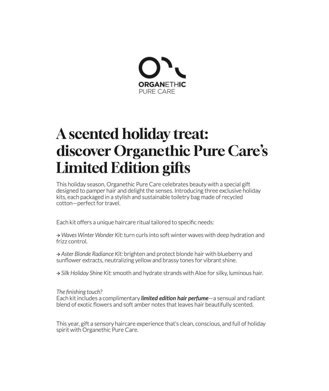 The holidays are here, bringing with them a sense of warmth and celebration. Our latest imagery highlights long, classic, glossywaves,creatingalookthatfeelsmodernyettimeless.We partneredwithourtalentedteamofartiststoevokethekindof understated elegance that feels right at home during the holidays. We’re thrilled to unveil our 2025 holiday collection. This year ’ s offerings are all about helping your salon shine featuring top-performing products and exclusive gift bundles curated to make sell-through simple and give every client somethingspecialtotakehome.