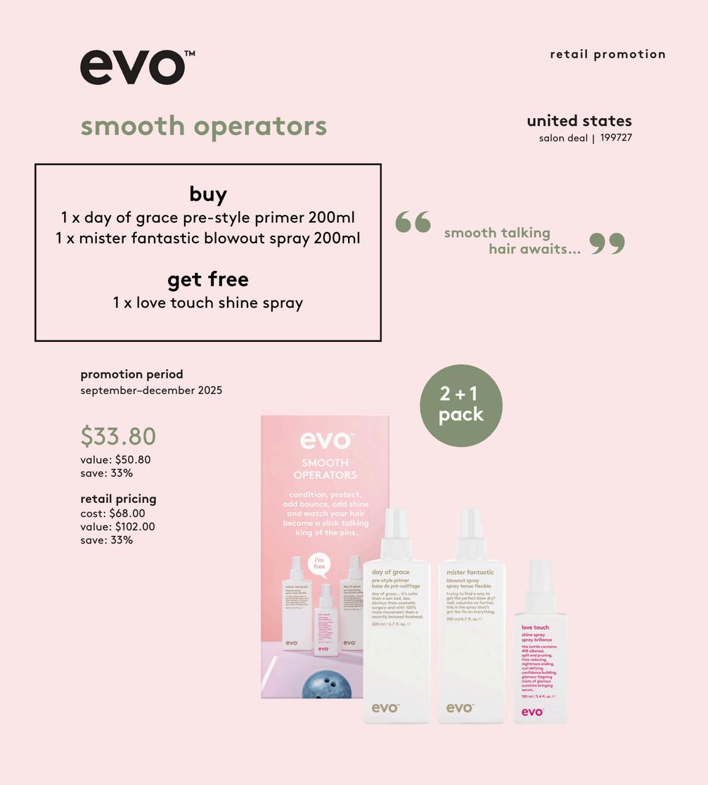 the repair introduction (2) ritual salvation repairing shampoo 300ml ritual salvation repairing conditioner 300ml mane attention protein treatment 30ml happy campers wearable treatment 30ml retail promotion united states a whole kit of evo minis at your service… discover one, discover them all.
