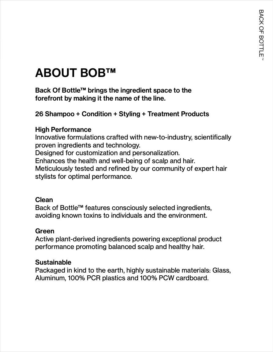 Begin your Back Of Bottle™ journey with our BOB™ Virtual Class, your start to mastering this clean, green, innovative and high performance hair care.