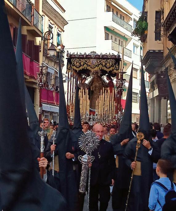 y, en consecuencia, es la actitud que debemos y nos obligamos a mantener desde que se inicia la estación de penitencia hasta su final y que en Nuestra Semana Santa, que se inicia el Domingo de Ramos, cuando desde la rampa de la Iglesia del Salvador suenan por primera vez nuestros tambores y cornetas para acompañar al Señor de la Sagrada Entrada de Jerusalén, continuando por la calles del Cerro del Águila con el Cristo del Desamparo y Abandono, por el barrio del Arenal con la Piedad del Baratillo, por Triana con el Nazareno de la O y terminando en la puerta de la parroquia de San Diego de Alcalá.