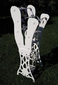 Leo Subanović, Učini da poletim, 2024. drvo, pamučni konac, pronađena metalna šivaća mašina, ručno šivanje, 156.5 x 56 x 57.5 cm