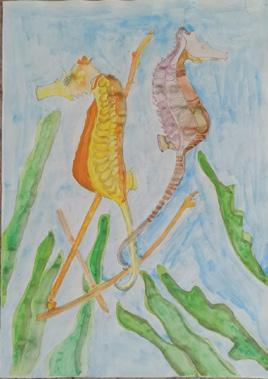 Zdravko Krešić, Morski konjici, 2025. vodene boje, 70 x 50 cm