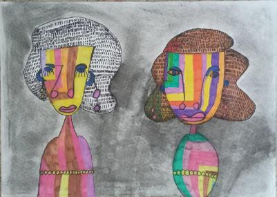 Jelena Gvozdanović, Žene, 2025. kombinirana tehnika, 50 x 70 cm