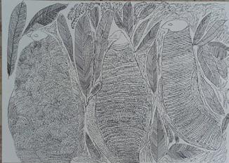 Jele Udovičić, Ptice, 2025., flomaster, 50 x 70 cm