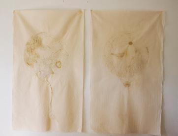 Vedrana Peček, Anima mundi, 2024./2025. slikanje, papir, tinta od hrastovih šišarki, 100 x 70 cm
