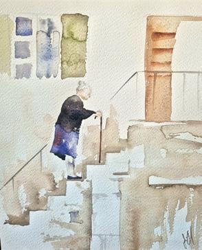 Lili Gluić, Nona čini skale, 2024. akvarel, 30 x 30 cm