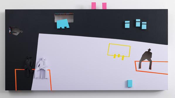 Iris Lobaš Kukavičić, Skriveni kodovi, 2024., oslikani reljef na drvu, 55 x 110 x 12 cm