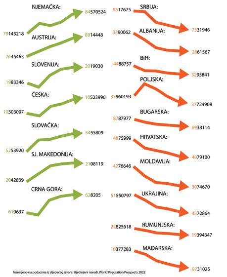 Razvoj stanovništva u Dunavskoj regiji od 1990. do 2022.: