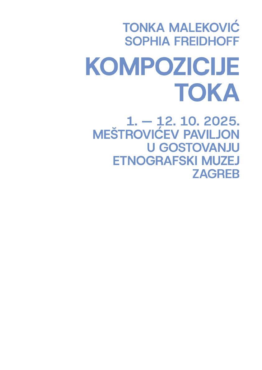 Izložba Kompozicije toka Tonke Maleković i Sophie Freidhoff, predstavljena u okviru Programa Meštrovićevog paviljona u gostovanju u Etnografskom muzeju u Zagrebu, nastavlja dugogodišnji interes umjetnice za istraživanje grada kao fenomena, njegovog funkcioniranja i nevidljivih mehanizama koji oblikuju svakodnevni život njegovih stanovnika.