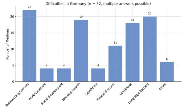 “I regret moving to Germany; I would have been much better in an English-speaking country. I am returning to Romania in a month; the situation there is better. My home is in Romania because of the people and the culture…”