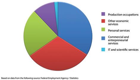 Distribution of migrants from the Danube region across individual economic sectors in Germany (2021):