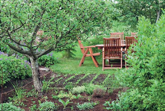Paar ürti ja mõned read külvatud aedvilju õunapuu all on terrassilt väga kenad vaadata. Kuid saak oleks ilmselt parem puust veidi kaugemal.