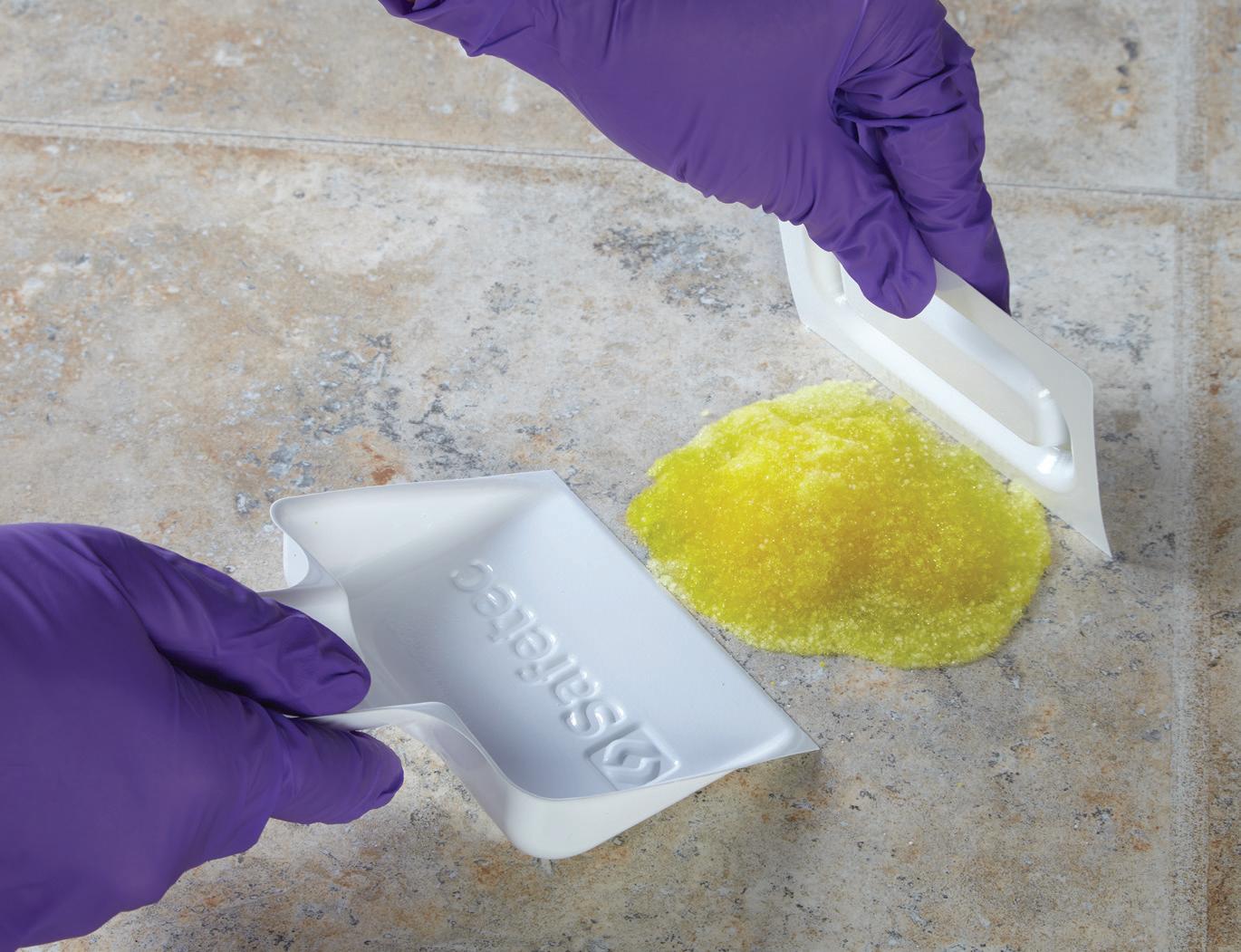 Compact - Disposable plastic credit card-sized scoop/scraper combo can be stored with spill kits for easy access.