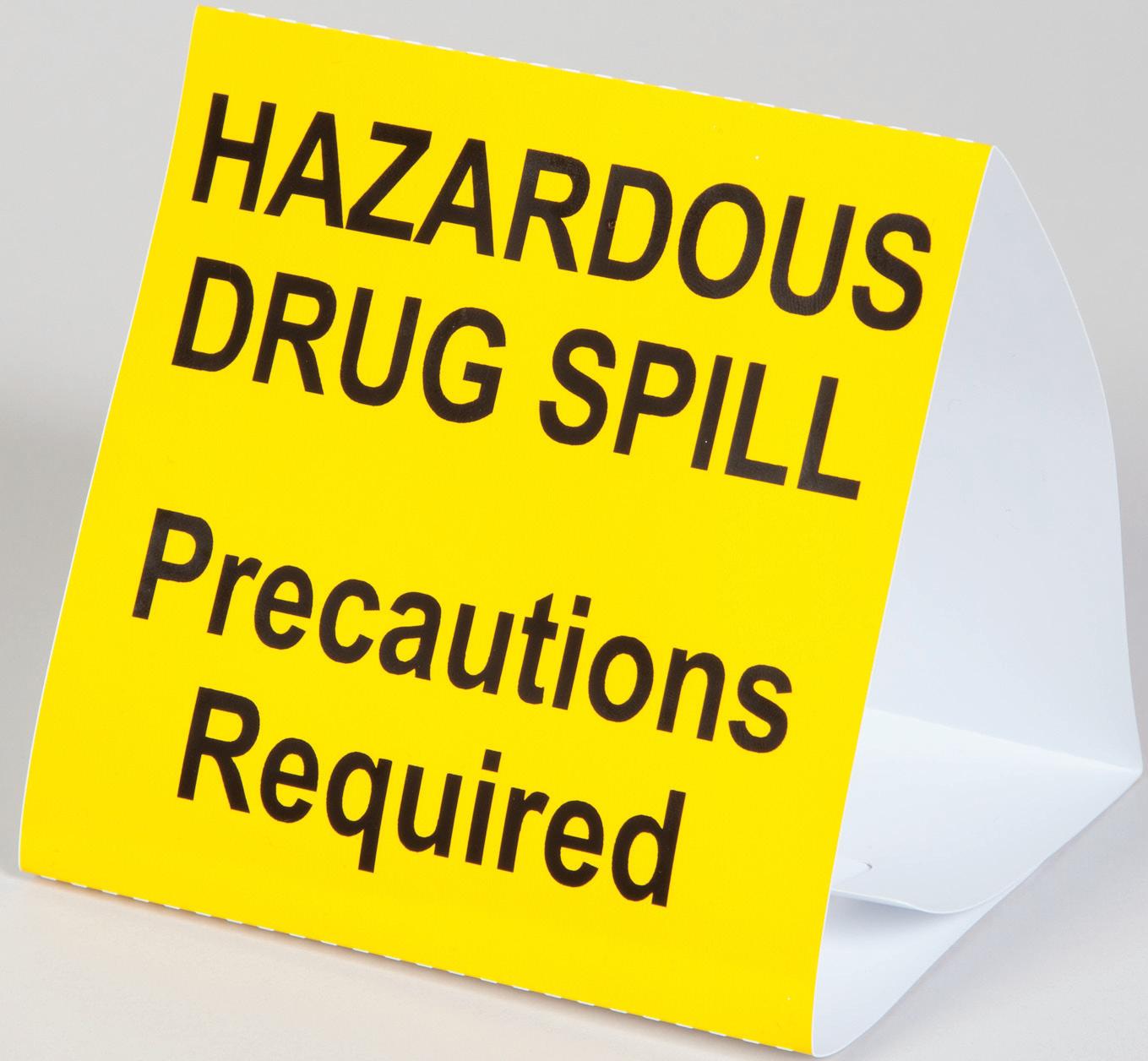 Clear Communication - PVC tent sign reads “HAZARDOUS DRUG SPILL Precautions Required”. Language can be customized for your facility. Contact our Resource Group for details.